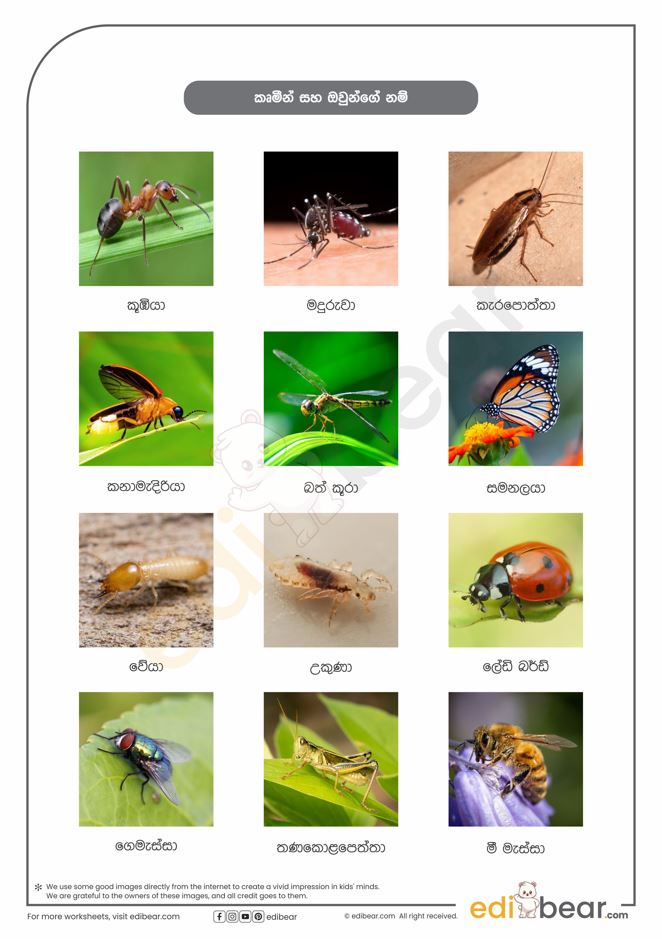 Insects names in Sinhala
