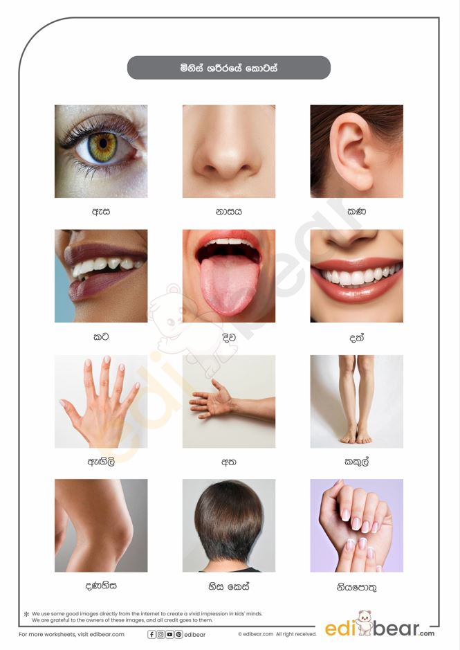 Parts of the body in Sinhala