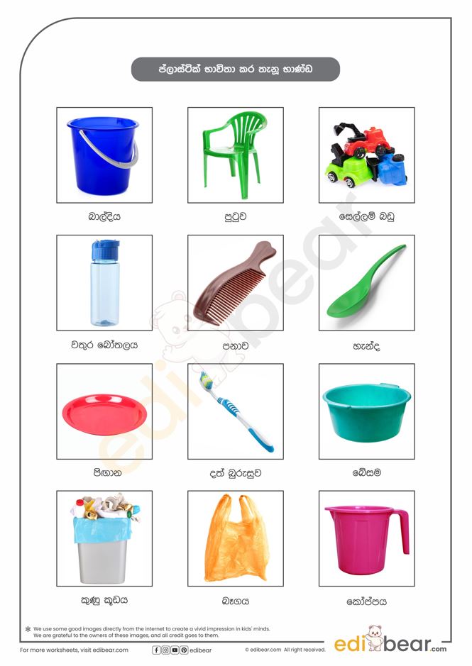 Things made of plastic in Sinhala