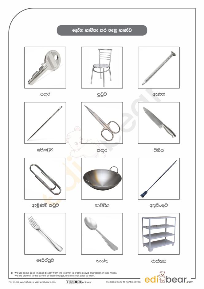 Things made of metal in Sinhala