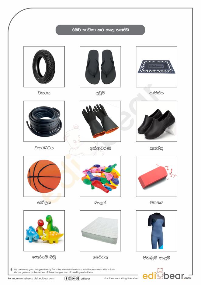 Things made of rubber in Sinhala