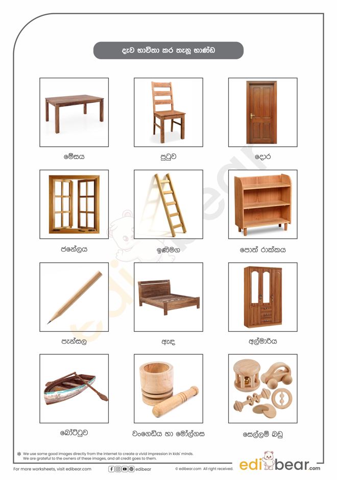 Things made of wood in Sinhala