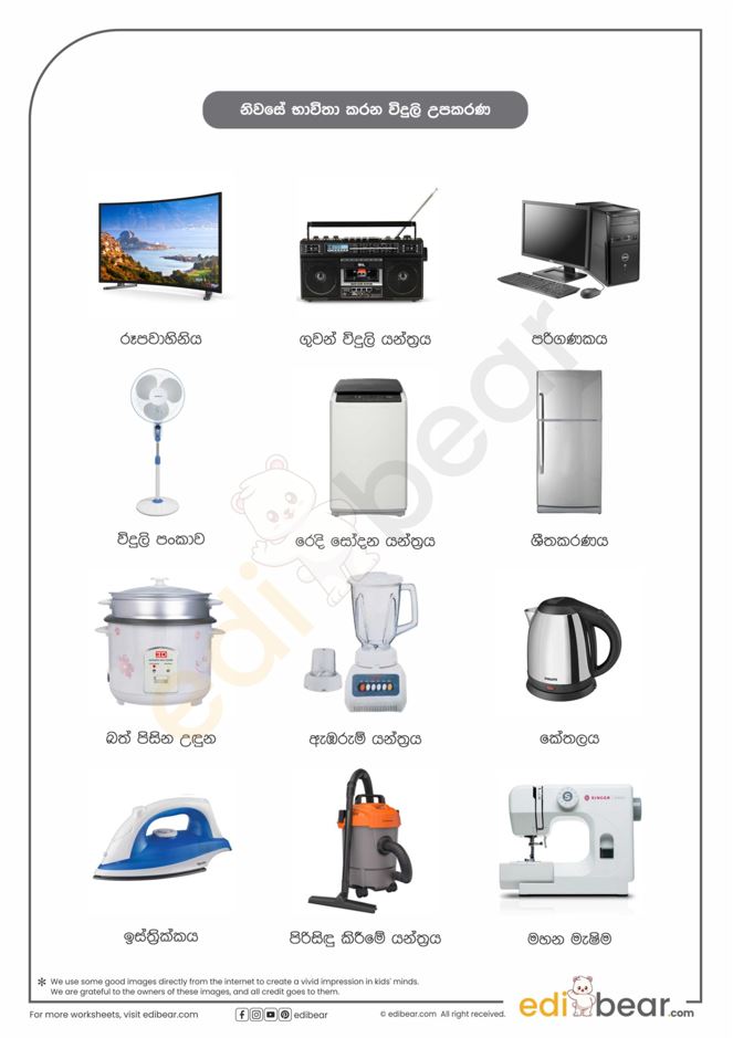 Home appliance names in Sinhala