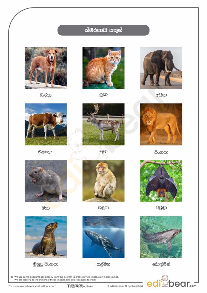 Mammal names in Sinhala