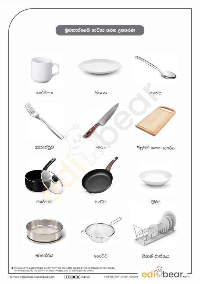 Kitchen utensils names in Sinhala