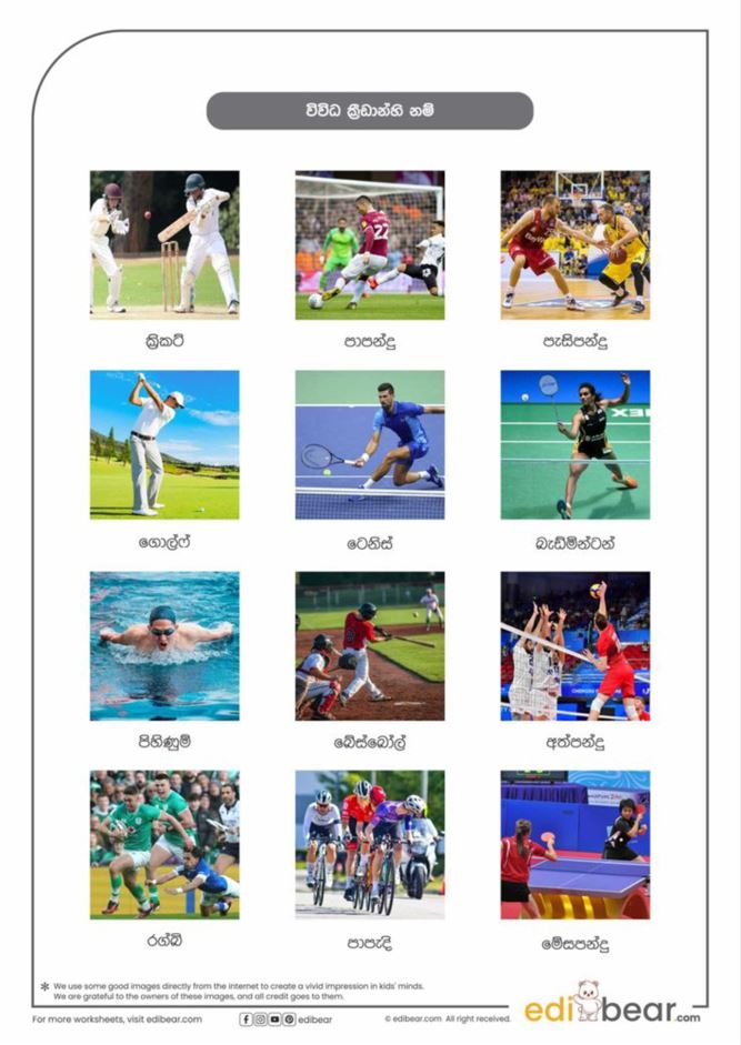 Sports names in Sinhala