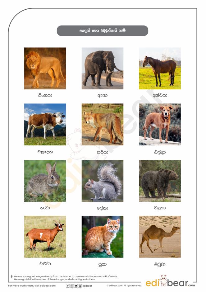 Animals names in Sinhala