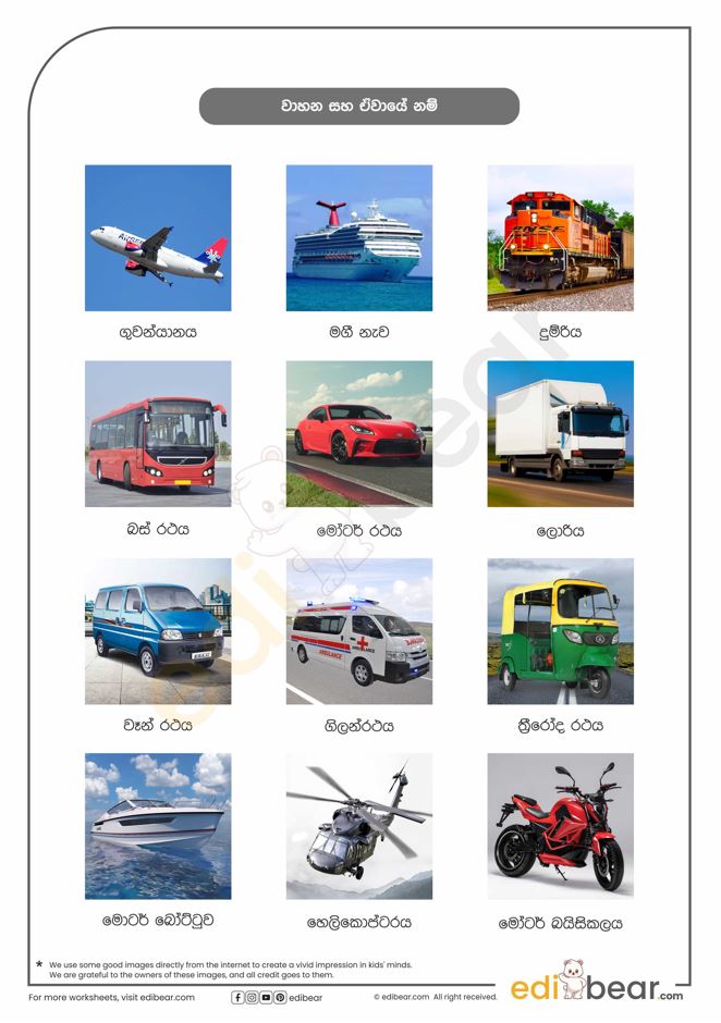Vehicles names in Sinhala