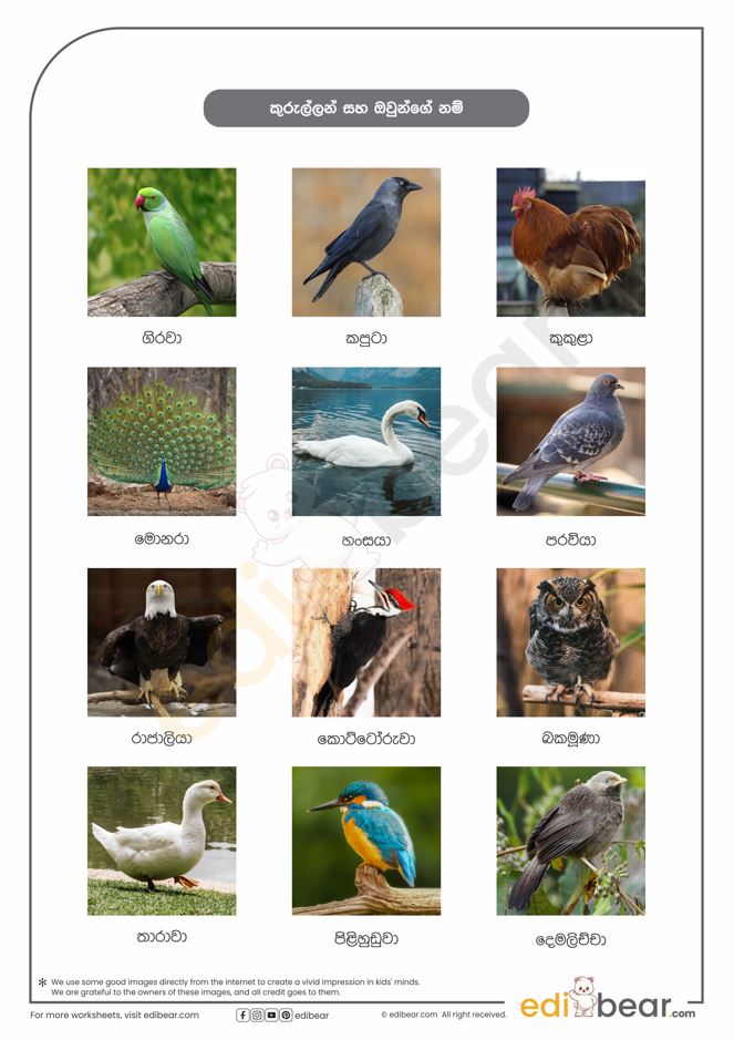 Birds names in Sinhala
